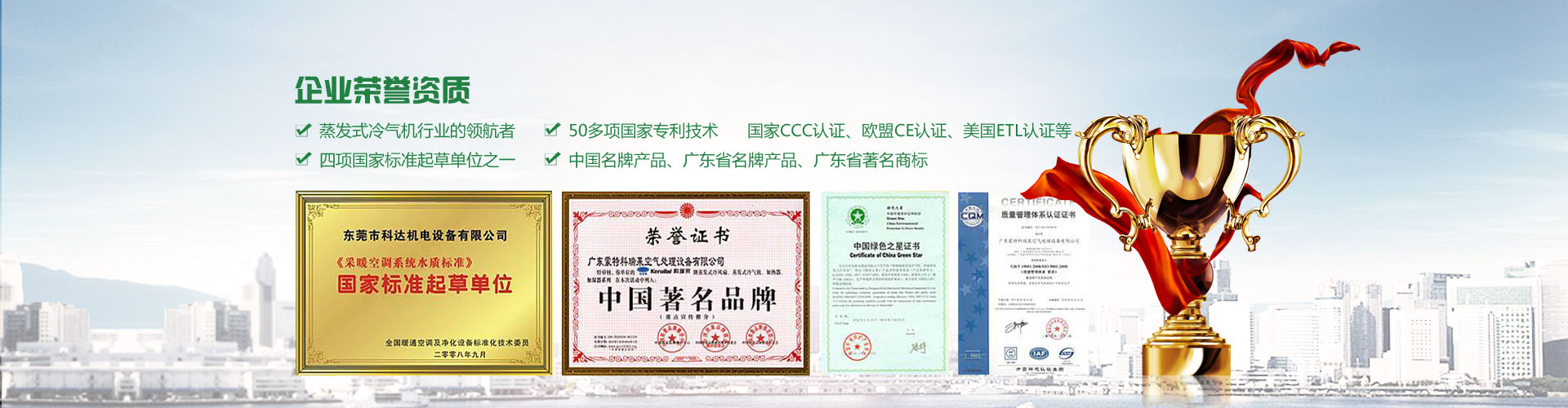 廣東金功機電設備有限公司是蒸發式冷氣機、蒸發式冷風扇、蒸發式降溫濕簾生產企業之一。公司總占地面積5萬多平方米,擁有投資過億元的現代化工業基地和研發基地,設有國內先進和大型的蒸發效率試驗室、風室流量測定試驗室、噪聲測定試驗室和蒸發冷卻產品綜合性能試驗室,并成立了廣東省企業技術中心、東莞市企業工程技術研究開發中心。經過短短幾年的發展,科達從一個小型的加工廠快速發展成為一個集自主研發、生產、銷售和服務于一體的公司,從研發、生產較為單一的產品發展成研發、生產多系列多品種的產品,并于2003年通過ISO9001國際質量管理體系認證。自創立至今,科達公司已獲得、廣東省產品、中國民營科技企業、廣...
